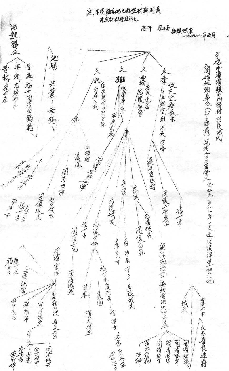池鲤腾与其家人随王审知兄弟从河南西平、固始县入闽(景福二年五月即公元893年),为池氏开闽始祖。